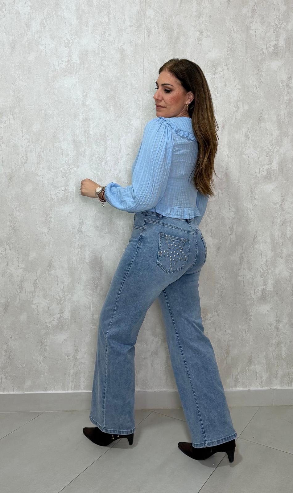 Blusa cuello bebé celeste