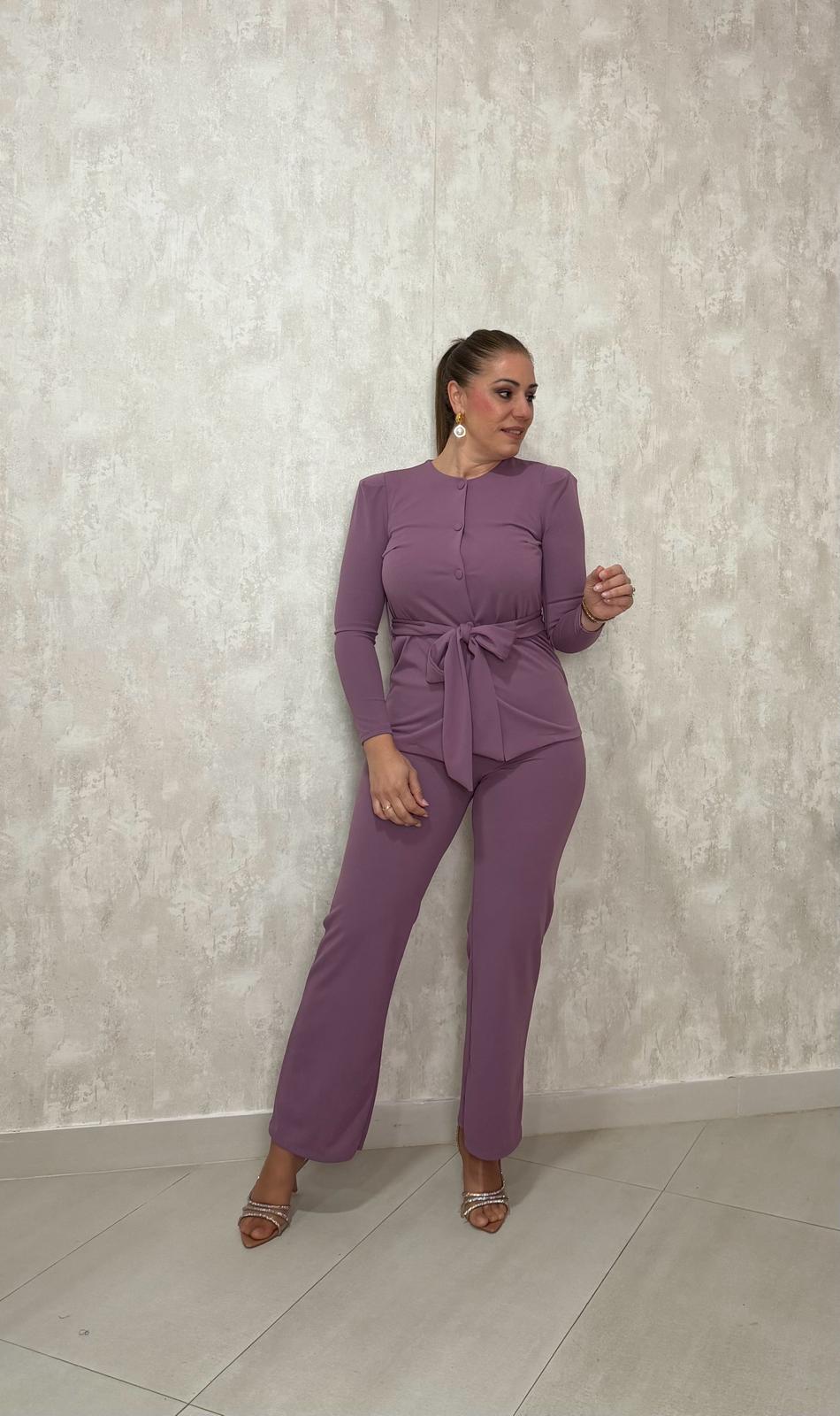 Conjunto chaqueta cruzada morado